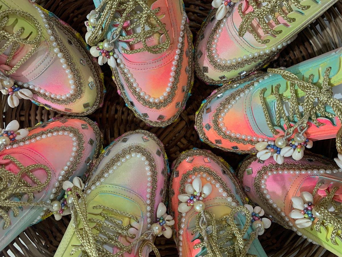 As experts in the field of handcrafted bridal sneakers, we take pride in offering a unique collection of handcrafted as well as hand painted sneakers that will make you stand out and make a statement with your outfits. Our brand was founded in 2015 in Haridwar by Himadri Chauhan, and since then, we have been dedicated to providing our customers with high-quality, customizable footwear that is both fashionable and comfortable.