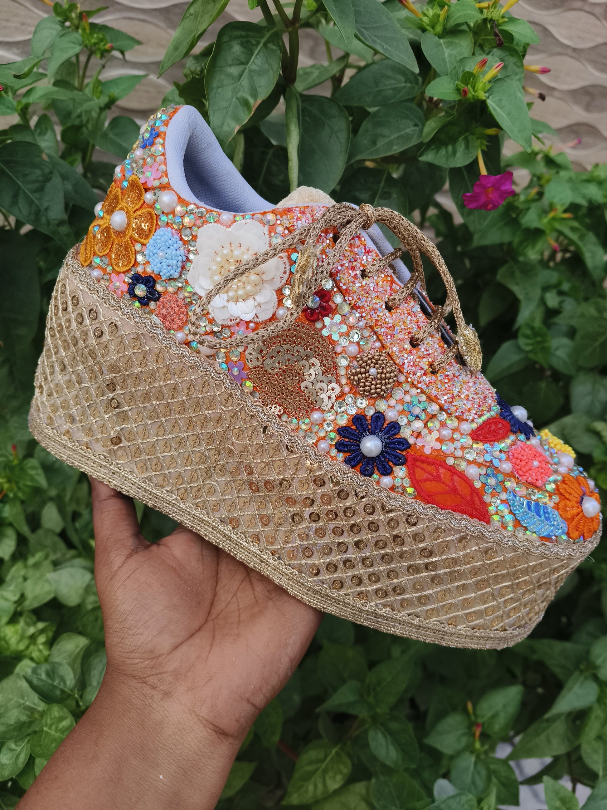 Blossom Beaded Wedge Sneakers – Where Comfort Meets Couture ✨
