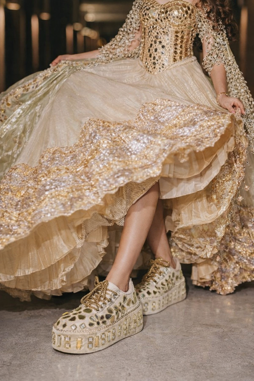 Perfect for sangeet, mehendi, or reception nights, these sneakers blend elegance, comfort, and sparkle in every step.