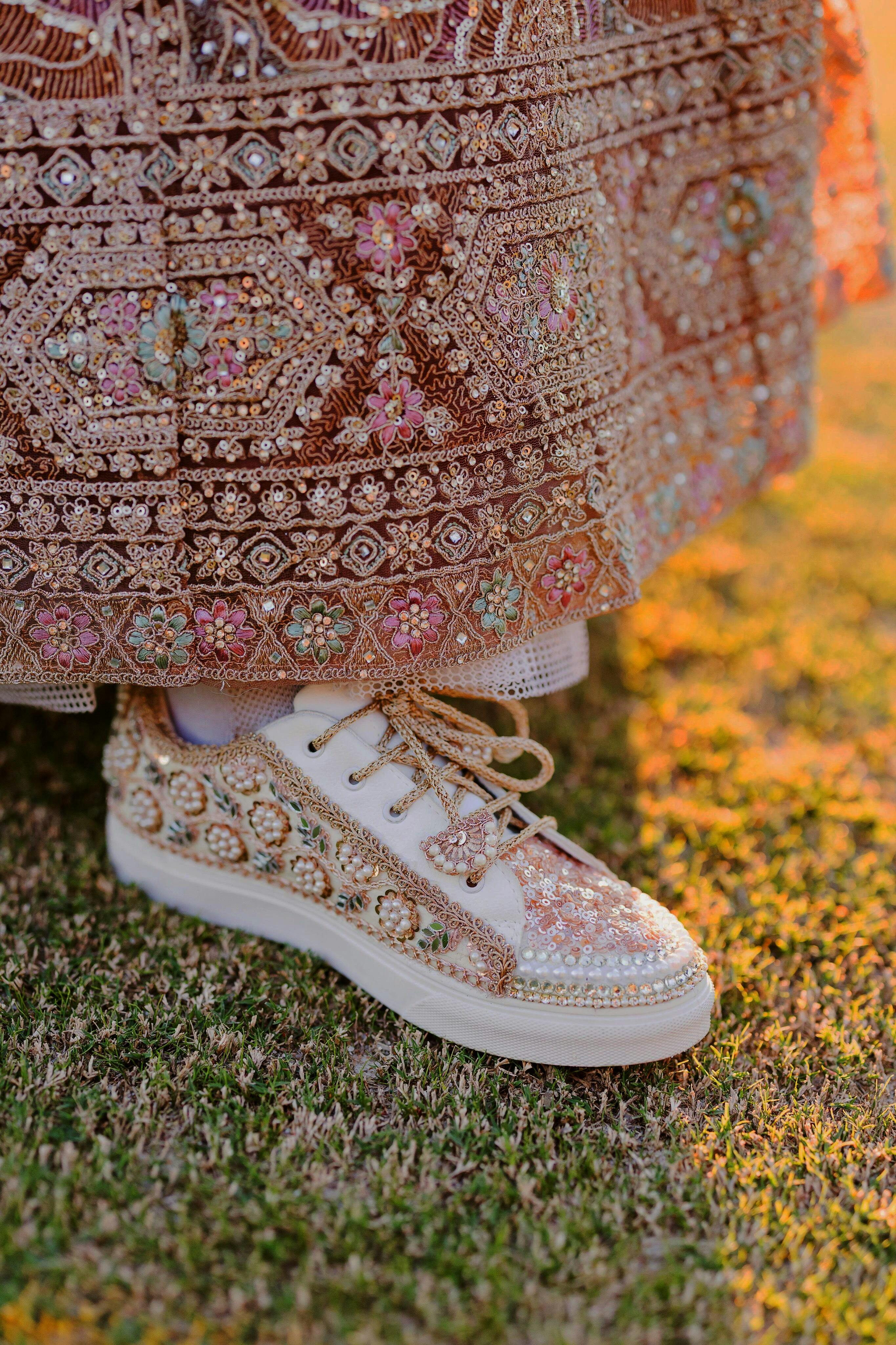 FUNKY N TRENDY rose gold/ tan peach/gold sneakers with pearl detailing for brides / bridesmaids/ ivory sneakers / beige sneakers / tan peach shoes/ rose gold sneakers / rose gold shoes