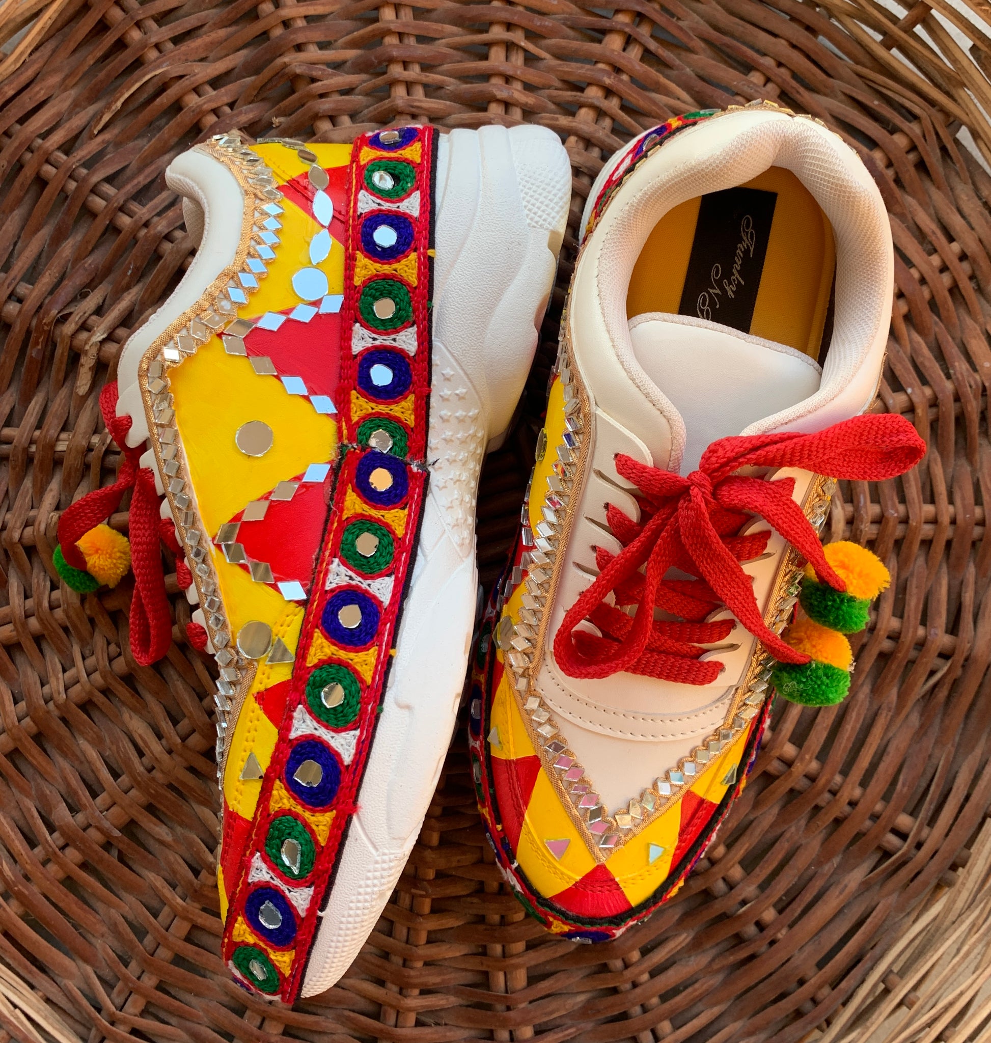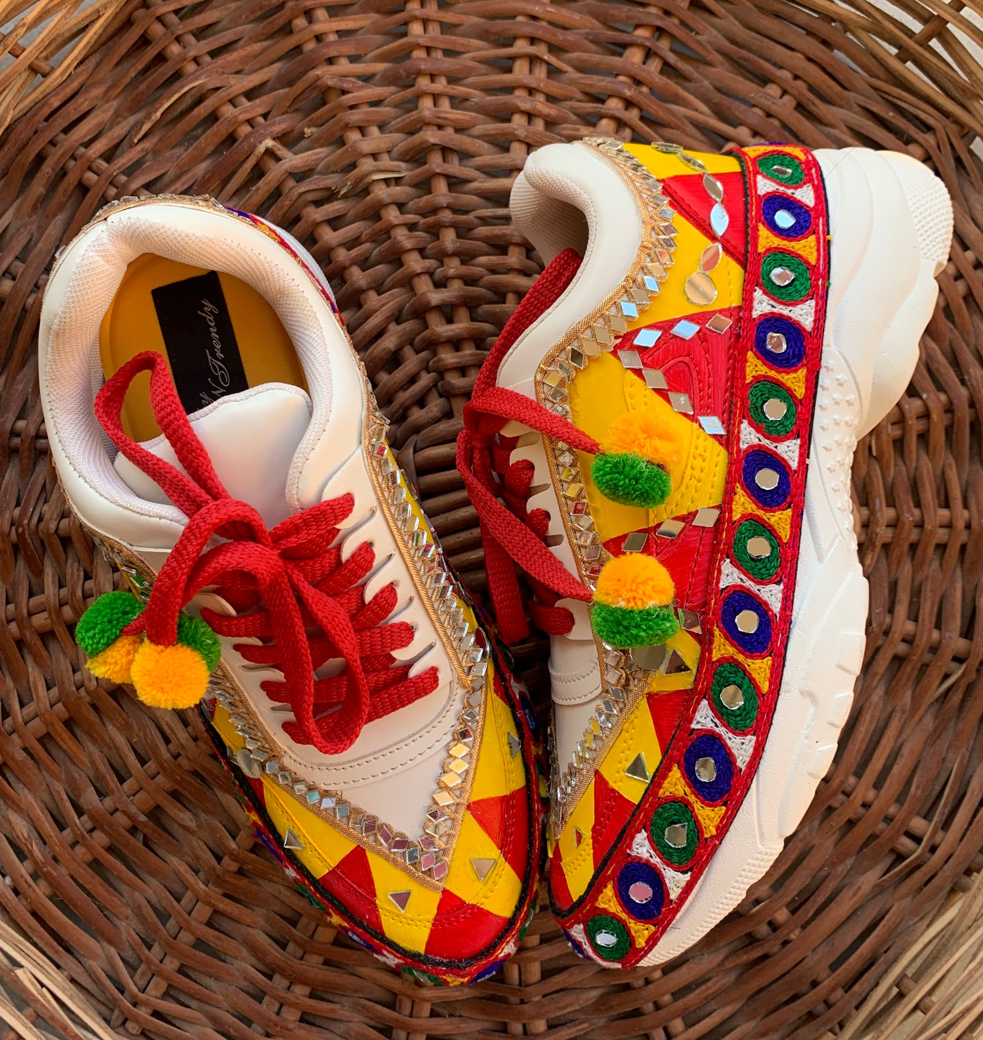 FUNKY N TREND “Handcrafted Kutch Mirror Sneakers – Garba Special”