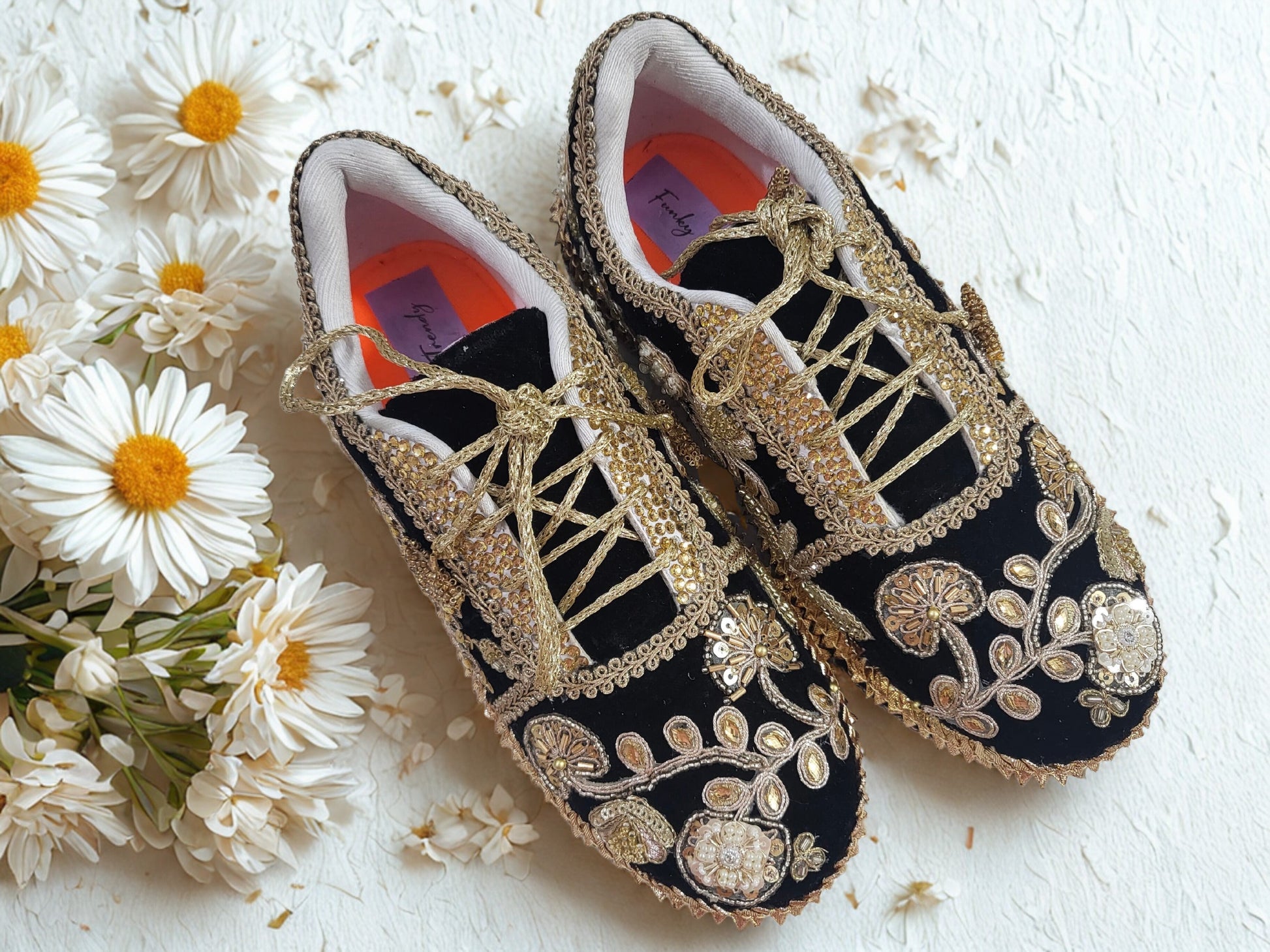 Funky N Trendy Couple sneakers / black shoes for bride and groom / couple combo